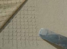 Eseguire il test su porzioni di almeno 100 cm2, in più punti delle facciate, praticando incisioni orizzontali e verticali equidistanti (circa 1 cm), incidendo gli strati delle vecchie pitture sino ad ottenere un reticolo regolare.